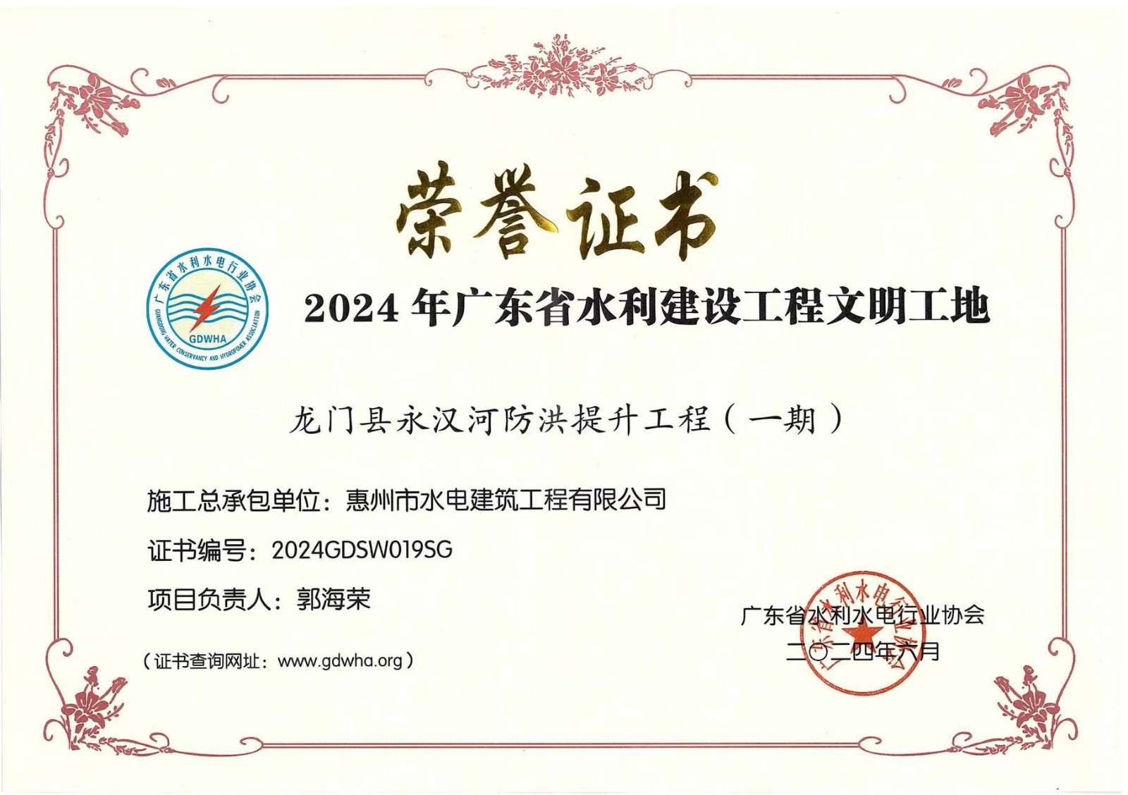 惠州市水電建筑工程有限公司成立于一九六四年四月,隸屬惠州市水務(wù)集團(tuán)有限公司,是一家國(guó)有綜合性施工企業(yè),主營(yíng)水利水電工程、房屋建筑、市政工程等施工業(yè)務(wù)。公司擁有水利水電工程施工總承包一級(jí)、建筑工程施工總承包一級(jí)、市政公用工程施工總承包一級(jí)、公路工程施工總承包三級(jí),公路路基、路面及建筑裝修裝飾專(zhuān)業(yè)承包二級(jí),環(huán)保工程、機(jī)電安裝、河湖整治、輸變電工程專(zhuān)業(yè)承包三級(jí)等經(jīng)營(yíng)資質(zhì)……